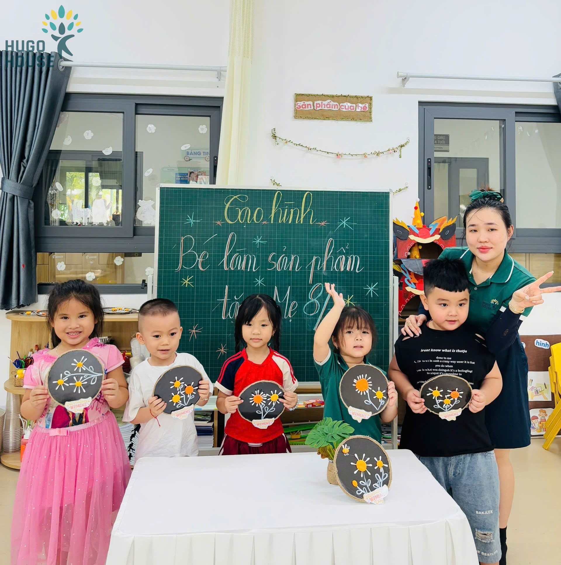 Các bé chăm chú cắt, dán, tô màu và trang trí món quà của mình thật đặc biệt. Dù còn vụng về nhưng mỗi sản phẩm đều là một “tác phẩm” đáng yêu, mang theo lời chúc ấm áp gửi đến bà đến mẹ.